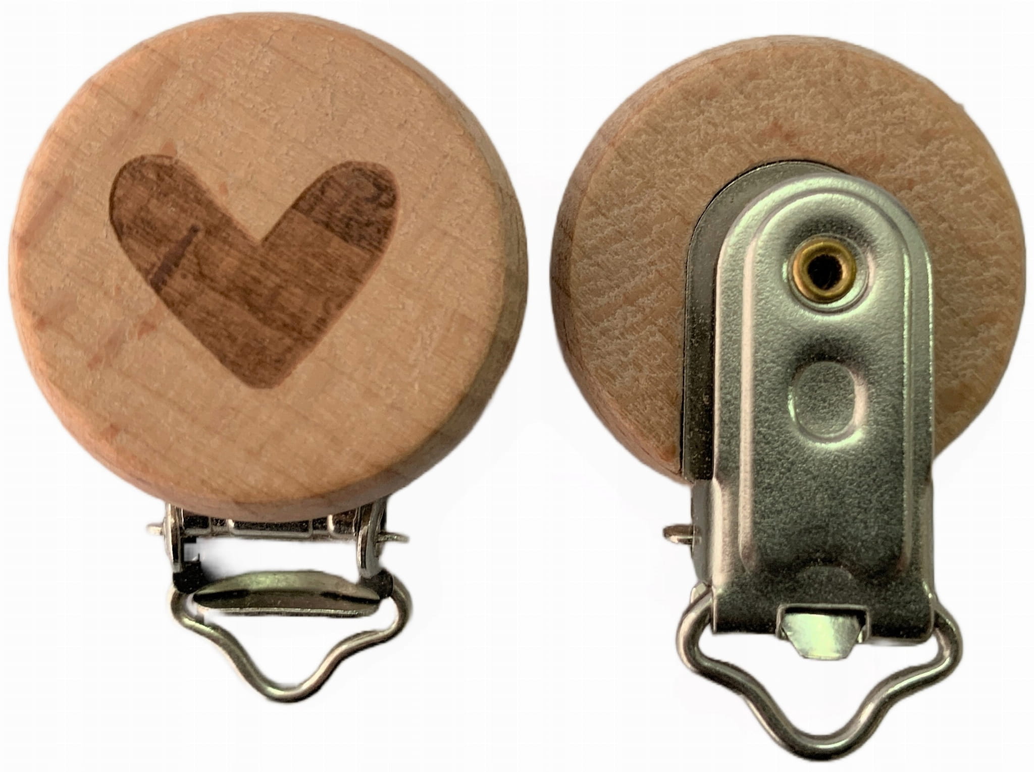 Drewniany klips zawieszka smoczka 30mm SERCE BUK