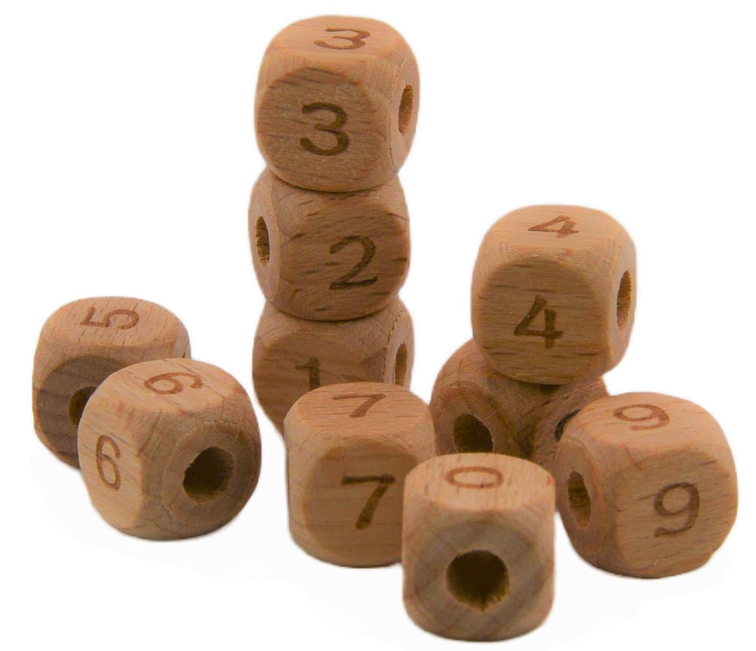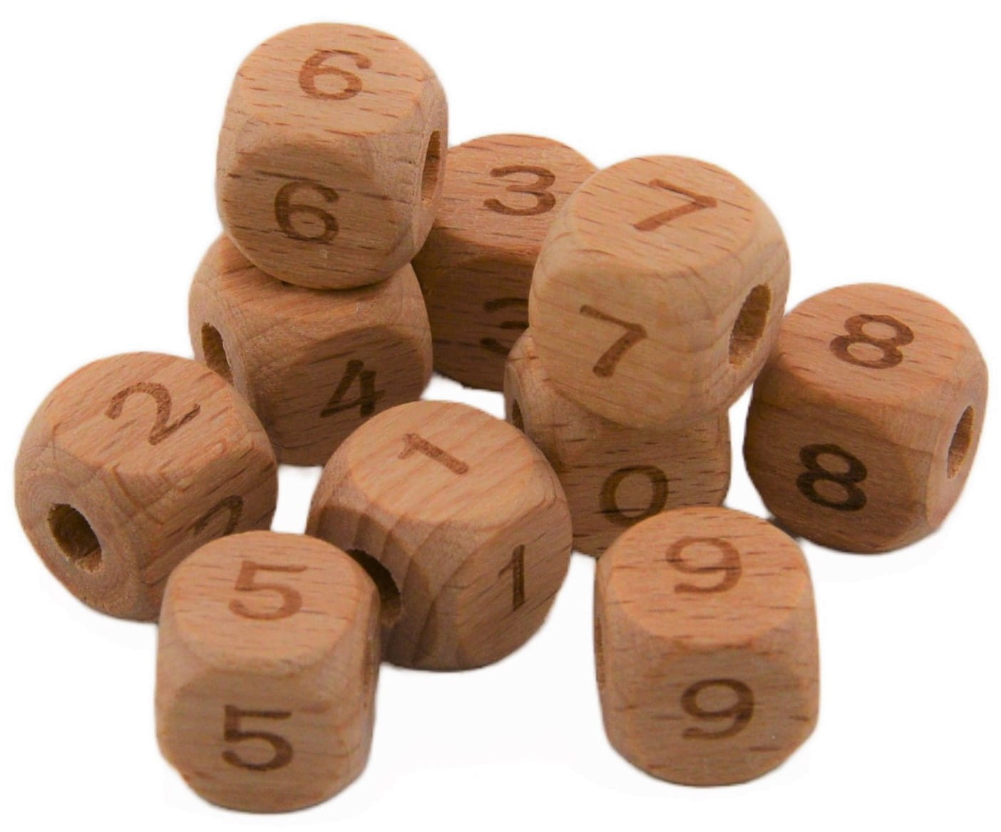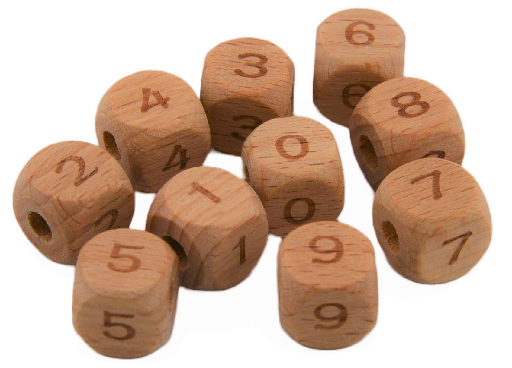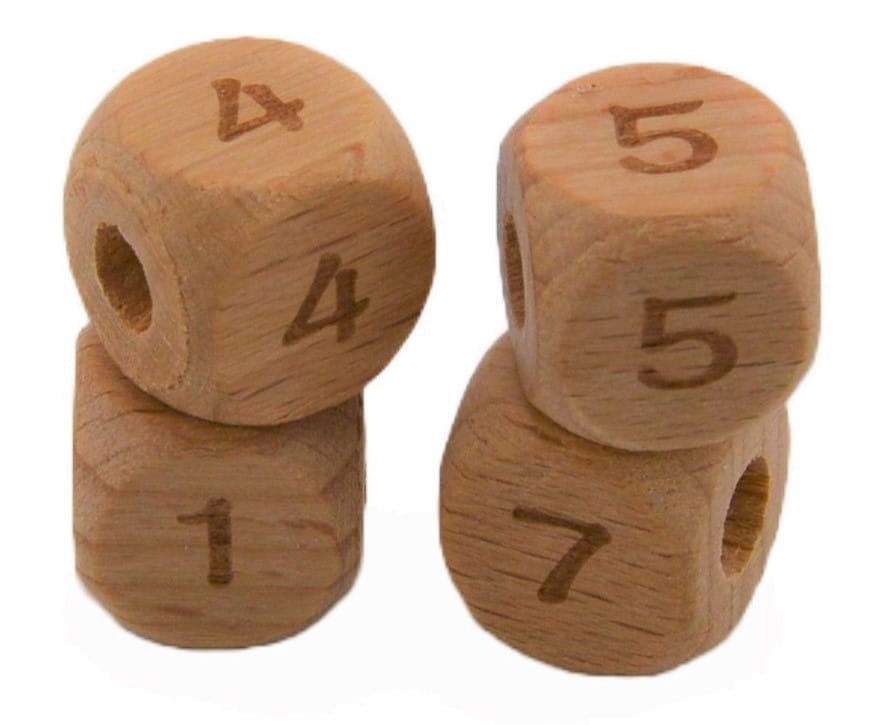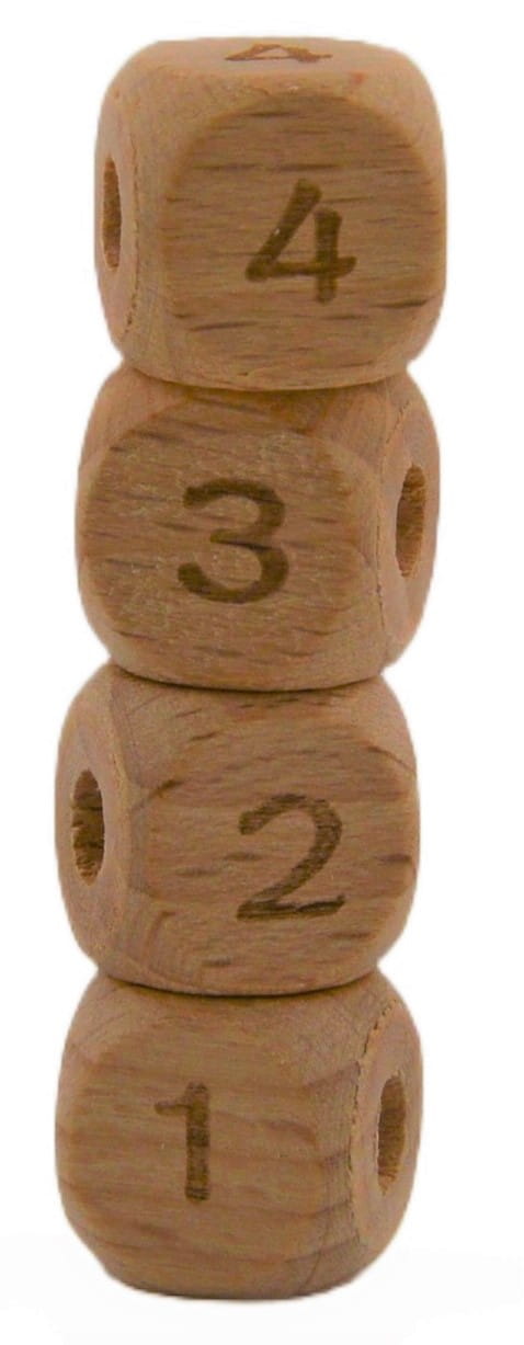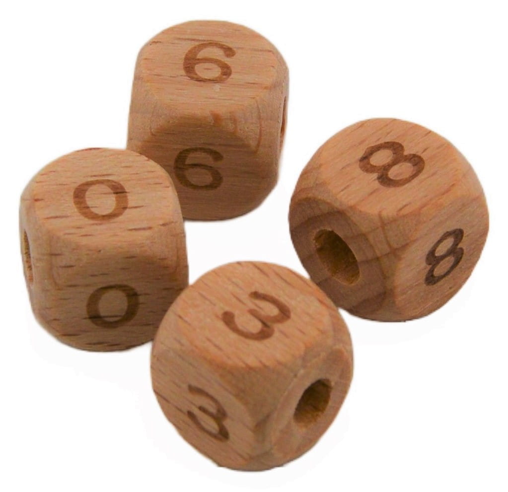 Koraliki kostki cyferki drewniane BUKOWE 12mm 4szt