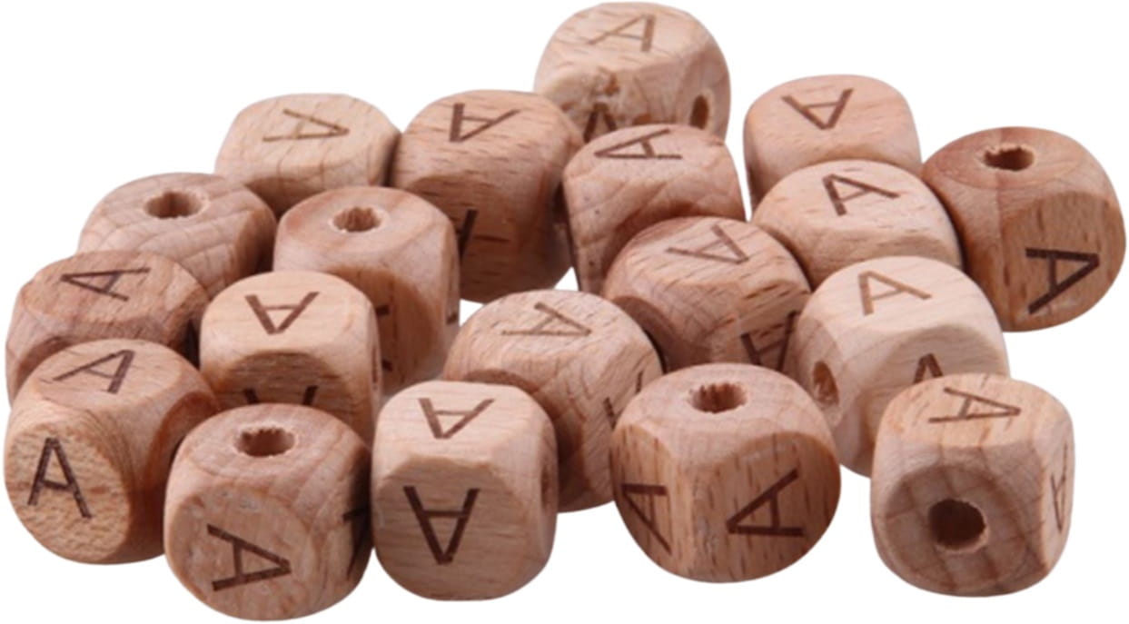 Kostki z grawerem literki , surowe naturalne drewno bukowe