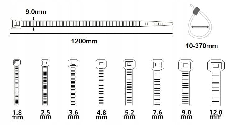 Na tej aukcji kupujesz 100 sztuk opasek zaciskowych o szerokości 9,0mm i długości 1200mm, kolor BIAŁY. Na innych aukcjach znajdziesz więcej podobnych produktów (inne kolory, rozmiary).